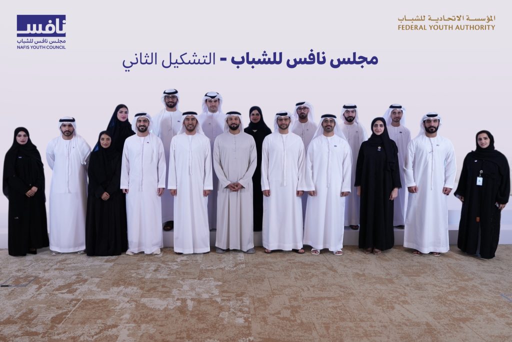 The second formation of the Nafis Youth Council includes a distinguished group of citizens representing vital sectors in the country. They are: Majid Khamis bin Zouba, Chairman of the Council; Mohammed Al Majidi; Mohammed Ali Mohammed Al Zeyoudi; Marashi Al Shaima Al Akkam; as well as Mohammed Khalid Al Ansari; Hamad Abdullah Al Shehhi; Ibrahim Talal Ibrahim Al Balushi; Mubarak Matar Al Mansouri; along with Maitha Saif Al Qaidi; Ahmed Mohammed Al Fardan; Maryam Abdulrahman Al Marzouqi; Rashid Rabea Mohammed Al Mazrouei; Ahmed Mohammed Al Janahi; Fatima Mansour Al Karbi; and Amina Khalil Ibrahim.